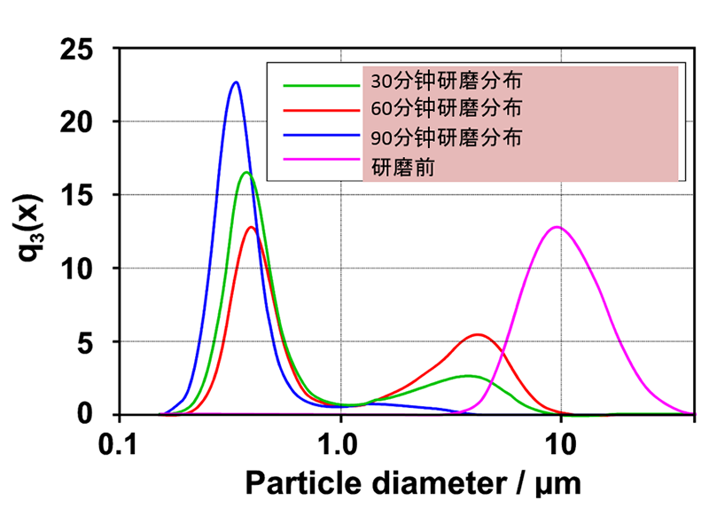 ![]() 相比傳統磨機,即使在相同的平均粒徑,它可以得到集中的粒度分布。 |